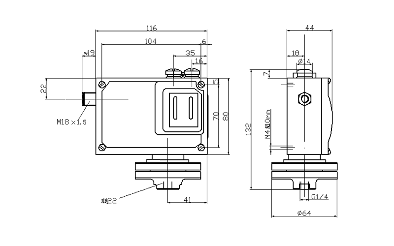 500/7D防爆壓力開關(guān)外形及安裝尺寸(單位:mm)