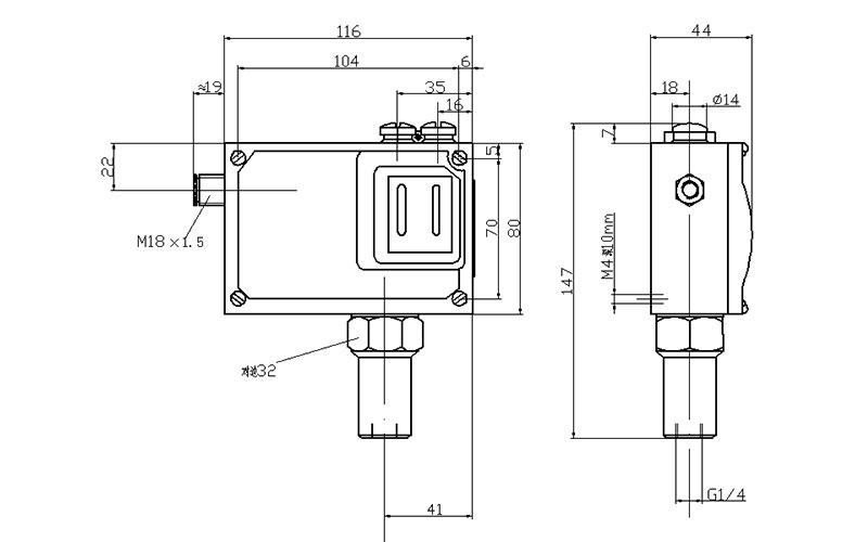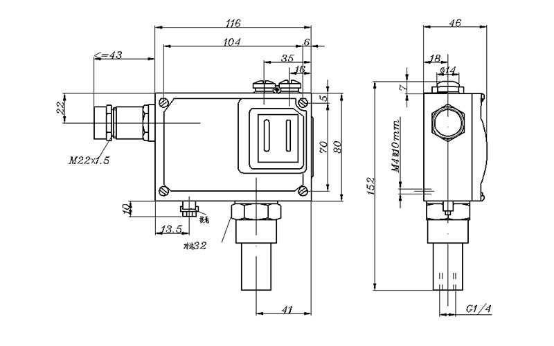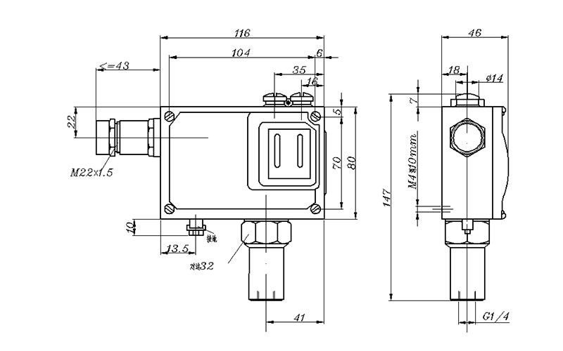 505/7D防爆壓力開關外形尺寸及安裝尺寸(單位:mm)