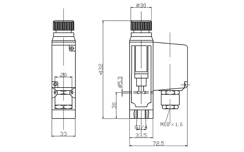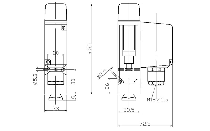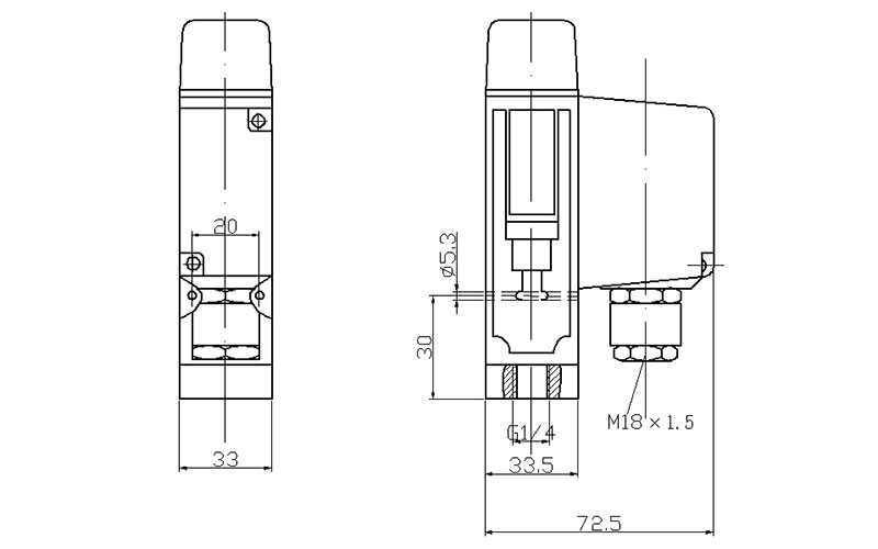500/8D壓力開關(guān)外形尺寸及安裝尺寸(單位:mm)
