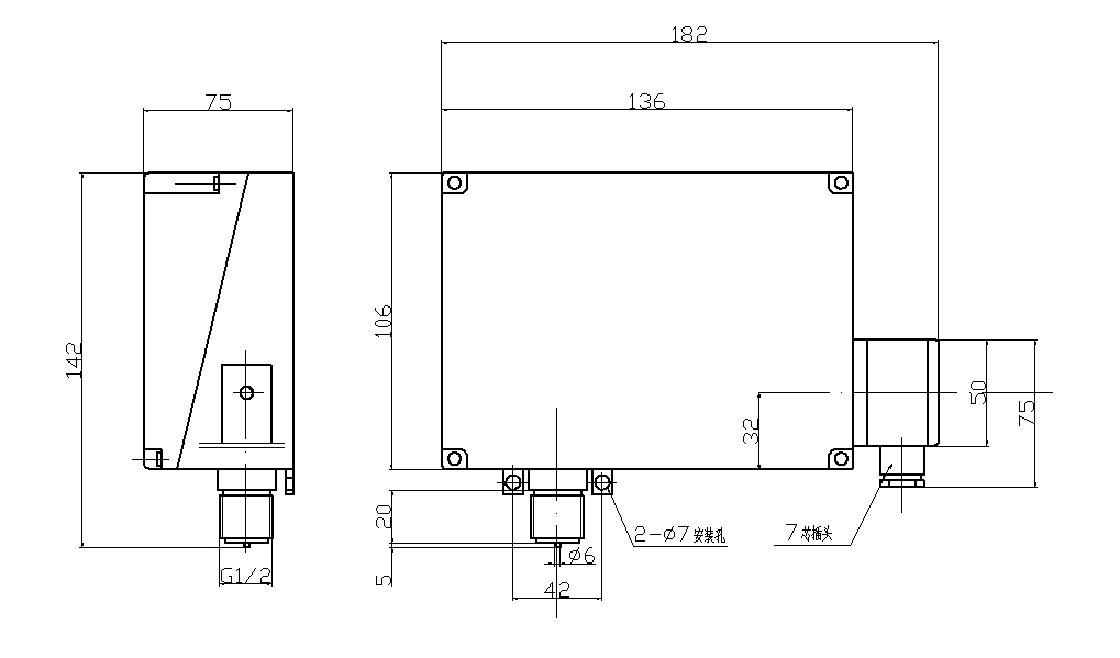 512/10D 壓力開關(guān)外形尺寸及安裝尺寸(單位:mm)